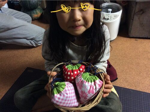 こんな季節ですが、いちご収穫しましたよー。 エコバック。 スマイルさんの型紙、結構好きなんです。 サルエルパンツも可愛いし使いやすい。 もちろん生地もすごくいいです。 こちらは端切れで作ったもの。 イチゴ娘の着画付き。 今日、我が研究所に遊びに来…