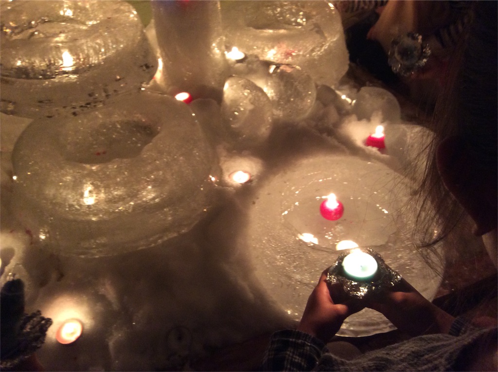 娘の幼稚園での感謝祭で最後に子どもたちが持つ小さなキャンドルに囲まれる時間がある。
