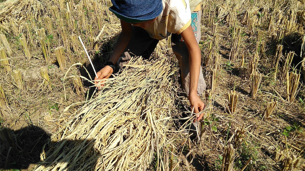 一年分の大事な主食、もち米を収穫するときは、みんなでします。
